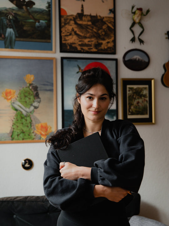 playing with meanings, taking something out of its natural environment, changing the context. I love poring over aged, yellowed pages from old newspapers and herbariums. From every trip, I bring back old magazines, fragments of crumbling books, and forgotten photographs, from antiquarian bookstores in a side street and Sunday flea markets. Most collages are created analogously. I physically possess all the scraps in paper form, and my favourite tools are scissors and glue. But I am also open to making digital collages. It is very important to me that they are not just an aesthetic arrangement of elements like arranging a bouquet of flowers. What matters to me is the content they carry. Sometimes it's a playful joke, sometimes it inspires reflection. Generally, I like it when the viewer gets a little itch in their brain or heart. It's wonderful at design fairs when someone looks at, for example, a pattern book and a smile plays on their lips, and I already know they got it, they saw "more."