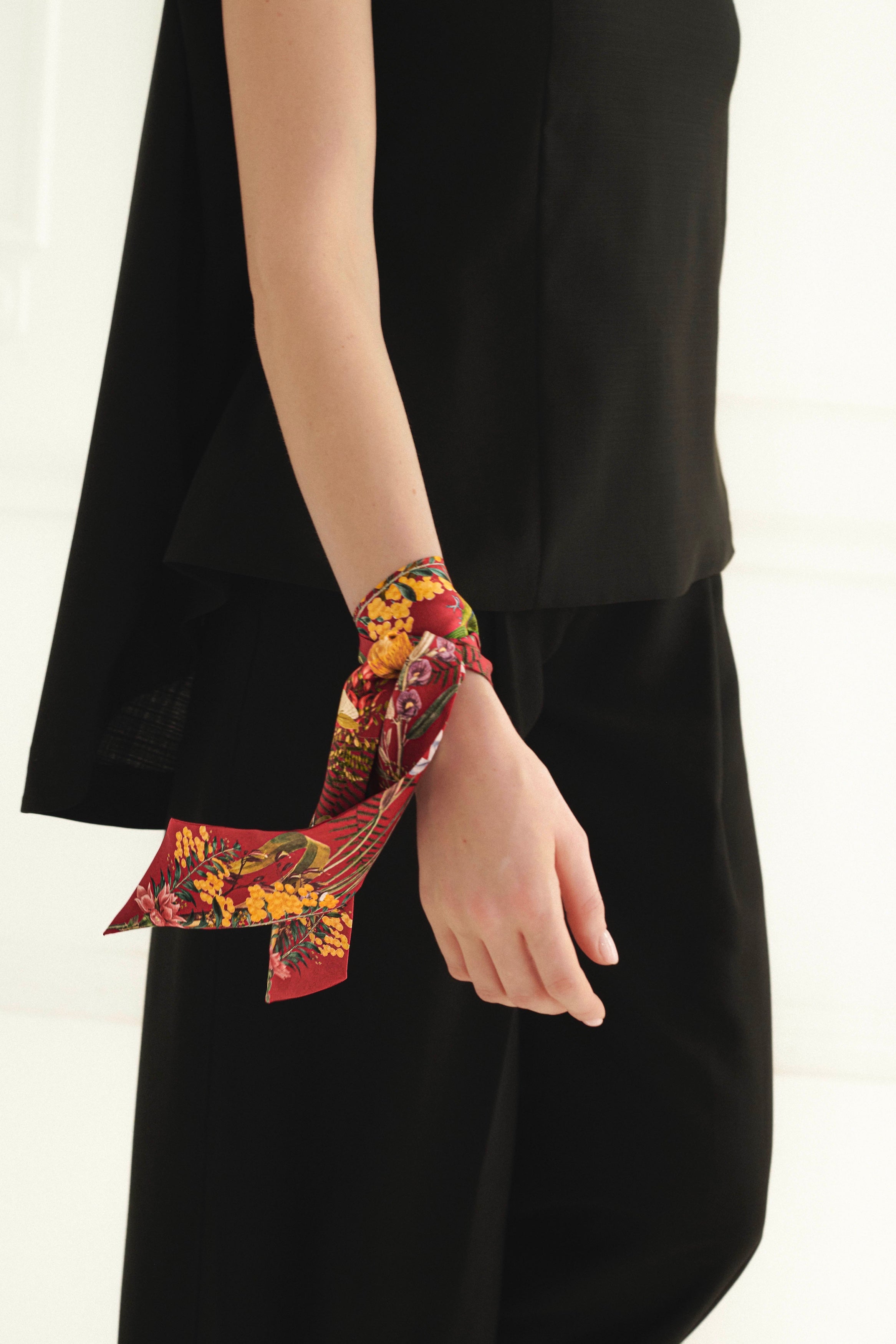 Silk twill ribbon is an elegant silk detail that offers limitless styling options and infuses a touch of fun into your daily look!